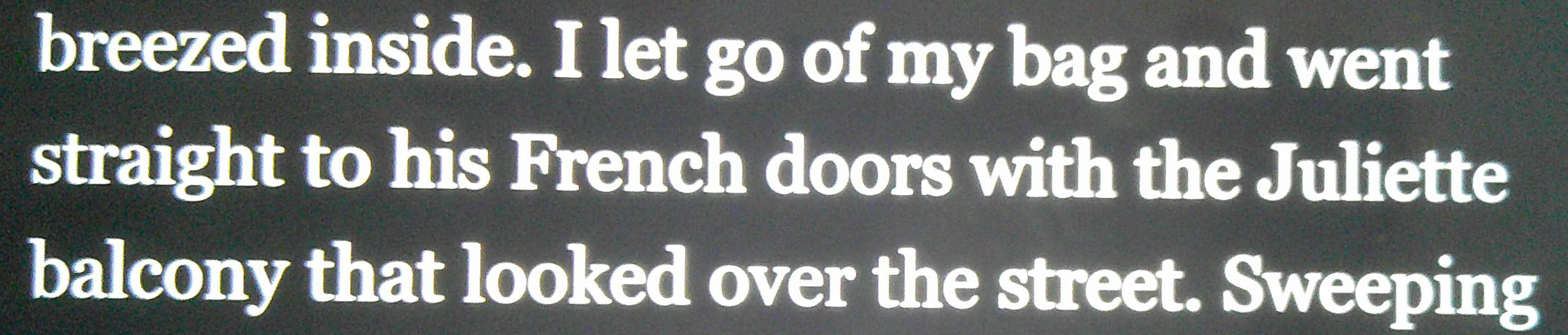 …. his French doors with the Juliette balcony that looked over the street.