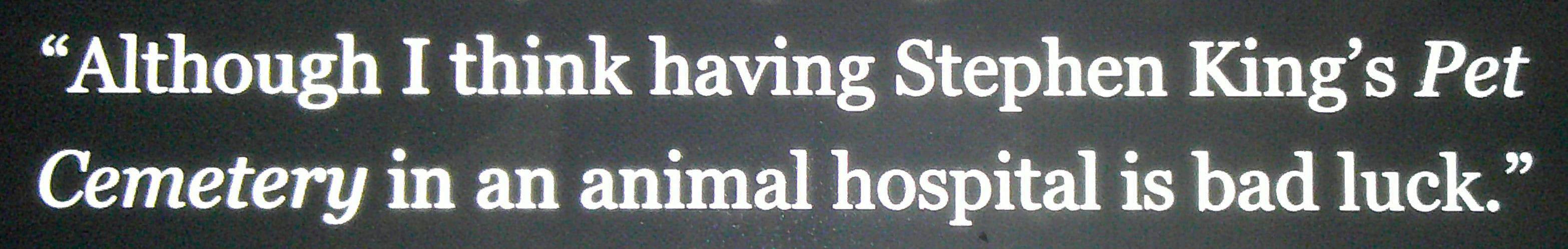 “I think having Stephen King’s Pet Cemetery in an animal hospital is bad luck.”